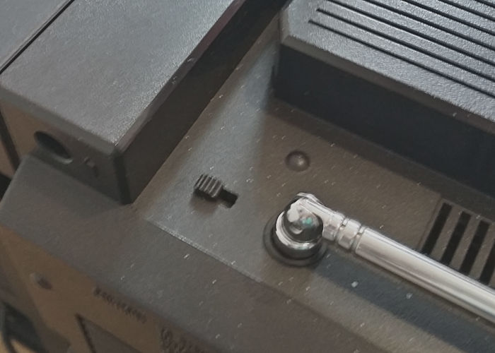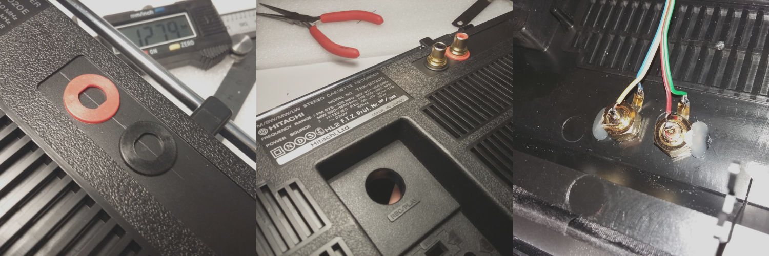 Une customisation sur un ghetto-blaster Hitachi, ajout d'un LINE IN pour un client.