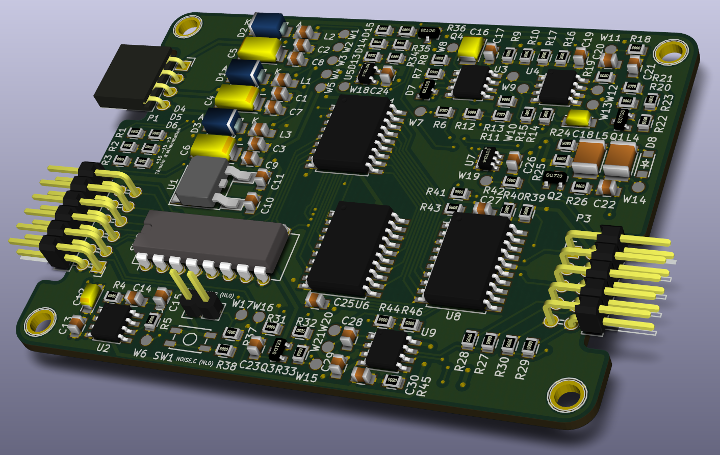 Pour designer la carte électronique après les expérimentations sur des prototypes faits à la main, j'ai utilisé KiCad et d'autres logiciels comme LTspice(Linear Technologie) mais aussi MultiSim(National Instrument) pour faire des simulations rapides.